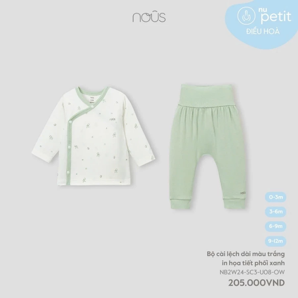 Bộ cài lệch dài màu trắng in hoạ tiết phối xanh 0M-9M