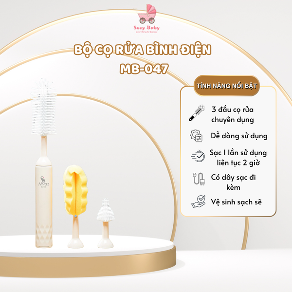 Sản phẩm bộ cọ rửa bình sữa điện Moaz BéBé MB – 047 giúp bố mẹ có thể cọ rửa, vệ sinh bình sữa, núm ti giả, ống hút cho con yêu sạch bong, dễ dàng.
