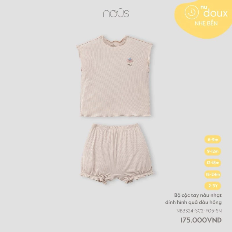 Bộ cộc tay nâu nhạt đính hình quả dâu hồng 6M-2Y