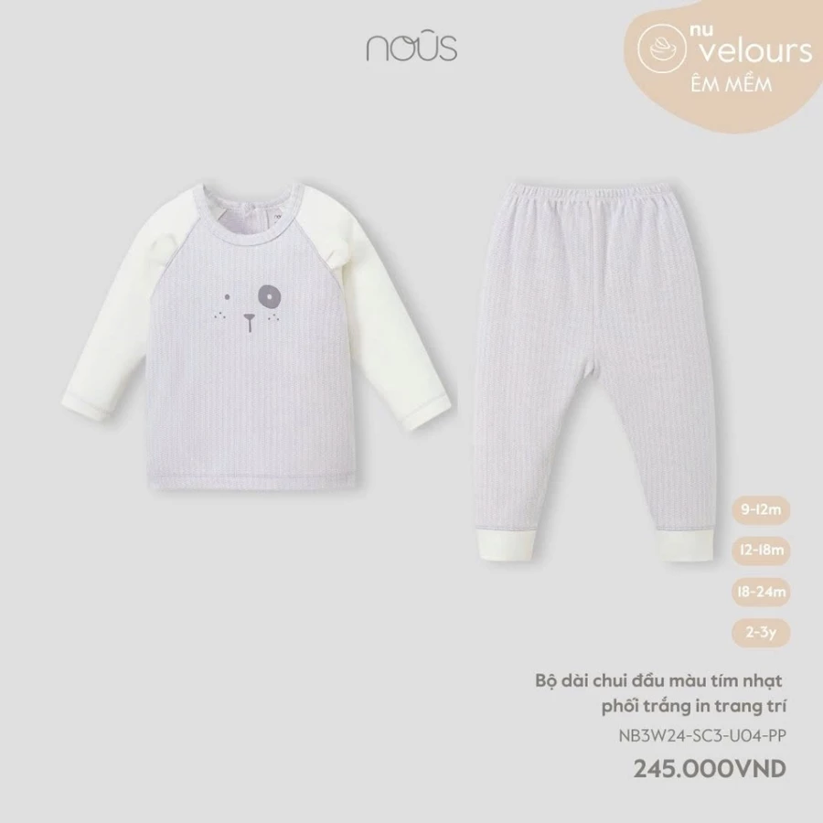 Bộ dài chui đầu màu tím nhạt phối trắng trang trí 9M-2Y