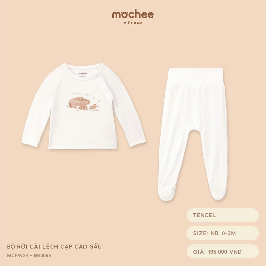 Bộ quần áo rời dài tay cài lệch phối màu Mochee cho bé mềm mại thoáng khí thấm hút tốt