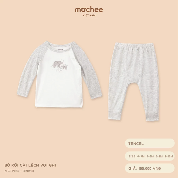 Bộ quần áo rời dài tay cài lệch phối màu Mochee cho bé mềm mại thoáng khí thấm hút tốt